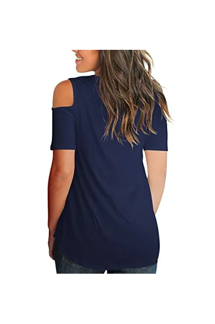 SLIMMING GRIL Women's Casual T Shirt V Neck Cold Shoulder Tops Short Sleeve Tshirt