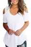 SLIMMING GRIL Women's Casual T Shirt V Neck Cold Shoulder Tops Short Sleeve Tshirt
