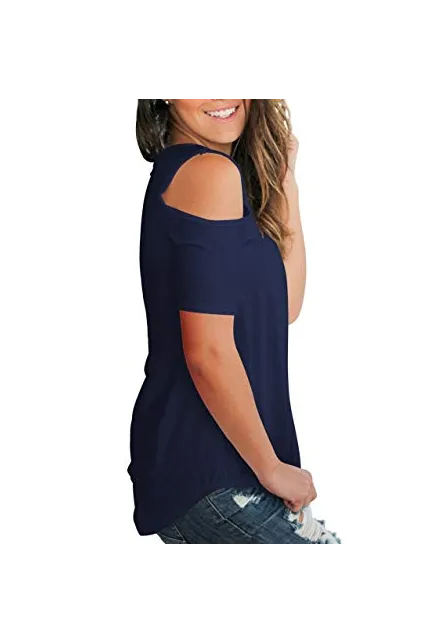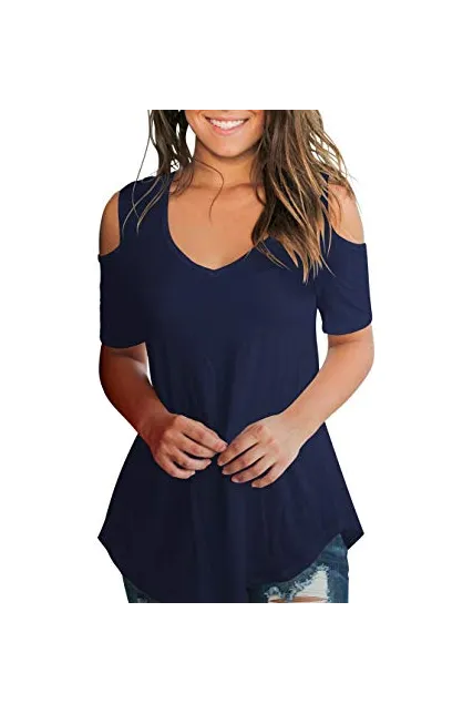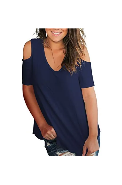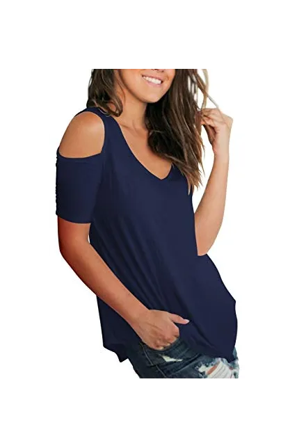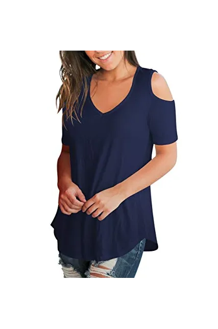 SLIMMING GRIL Women's Casual T Shirt V Neck Cold Shoulder Tops Short Sleeve Tshirt