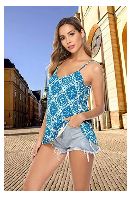 - Features: Boho Cami Shirt Style, Sexy V Neck, Sleeveless, Unique Floral Prints, Buttons Down, Loose Fit, Adjustable Spaghetti Strap