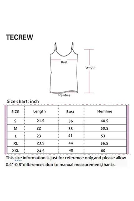 - Size Reference: S=bust 36'', M=bust 38'', L=bust 41'', XL=44'', XXL=48''(If you have big boobs/large chest, will recommend a size up.)