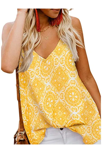 - Features: Boho Cami Shirt Style, Sexy V Neck, Sleeveless, Unique Floral Prints, Buttons Down, Loose Fit, Adjustable Spaghetti Strap