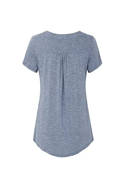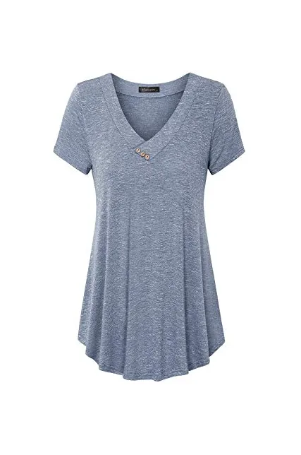 - Flare style/Hits at hip/Flowy tunic/Short sleeve/V neckline with vintage button embellished