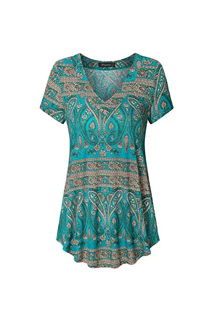 - Flare style/Hits at hip/Flowy tunic/Short sleeve/V neckline with vintage button embellished