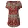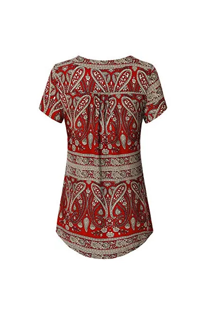 - Flare style/Hits at hip/Flowy tunic/Short sleeve/V neckline with vintage button embellished