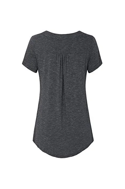 - Flare style/Hits at hip/Flowy tunic/Short sleeve/V neckline with vintage button embellished