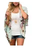 Women's Floral Print Puff Sleeve Kimono Cardigan Loose Cover Up Casual Blouse Tops