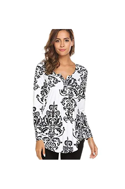 - Loose fit tunic Features Paisley Bohemia pattern design / Floral print pattern / Long sleeve / V neck /Button up / Pleated front/Flowy bottom hem