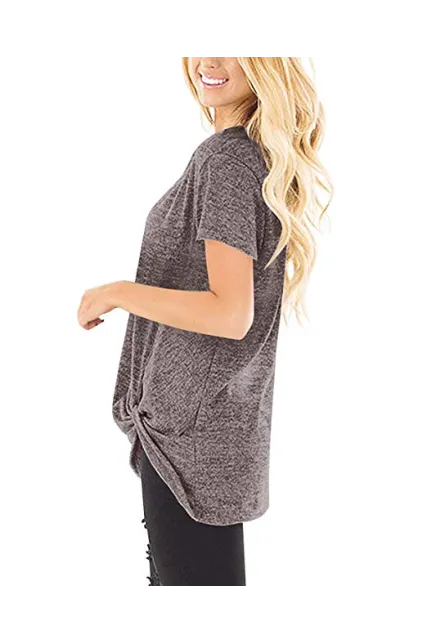 - This women short sleeve top is made by soft t shirt material, featuring side knot with twisted detail at hem. It is a stylish side twist knotted tops/women round neck tshirts/short sleeve tunics for women/loose fit top/short sleeve t shirts/solid tunic tops.
