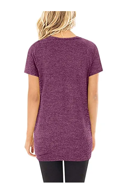 - This women short sleeve top is made by soft t shirt material, featuring side knot with twisted detail at hem. It is a stylish side twist knotted tops/women round neck tshirts/short sleeve tunics for women/loose fit top/short sleeve t shirts/solid tunic tops.