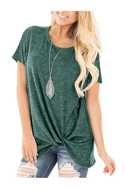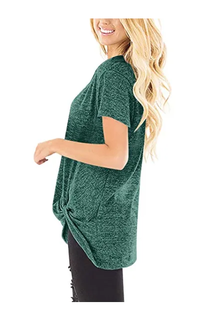 - This women short sleeve top is made by soft t shirt material, featuring side knot with twisted detail at hem. It is a stylish side twist knotted tops/women round neck tshirts/short sleeve tunics for women/loose fit top/short sleeve t shirts/solid tunic tops.