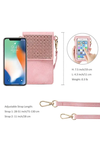 - [Suitable Various Phone Size] Our stylish Cell Phone Purse hold a perfect size for iPhone Xs Max, Xs, Xr, X, 8 plus,Samsung Galaxy S10 plus, S10, Note 8 and other smart mobile phones, fits with the smartphone with screen size of 6.5 inch (WITHOUT phone case) and below. (Bag Dimension: Length 4.3" * Height 7.5"* Depth 0.5")
