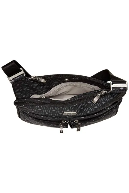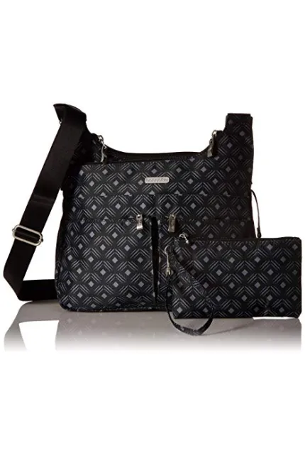 This is my second Baggallini bag and I choose this one since it was a little larger than my previous bag and has more compartments. Love the charcoal exterior color and the pink interior. The cross over fit is adjustable so I was able to get the length exactly right for my height. Similar to my other bag, this one seems very well made. Love the number and variable sizes of the different compartment. Love the design of the 2 large zipper sections with a center snap section. Glad that I have the 2 bag sizes to use depending on how many items I need to carry on a given day. I wish the matching charcoal/pink wallet wasn’t so pricey because it would be great to have.