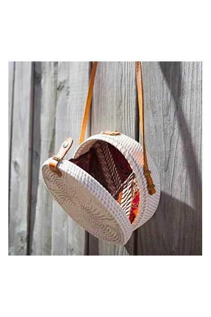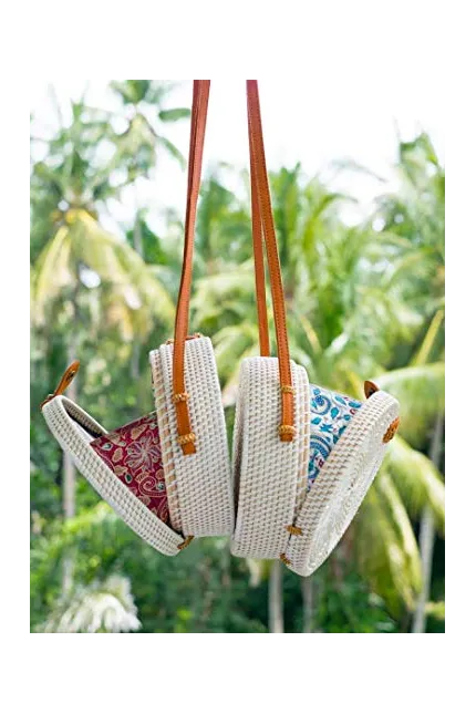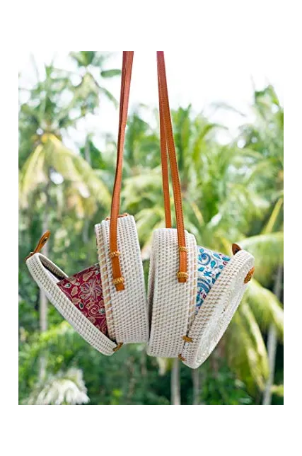 - Made in Bali (Indonesia) 100% Real and Natural Handmade Rattan Bags with Leather Button and Batik Linen Inside (Linen Pattern Varies for Each Bag)