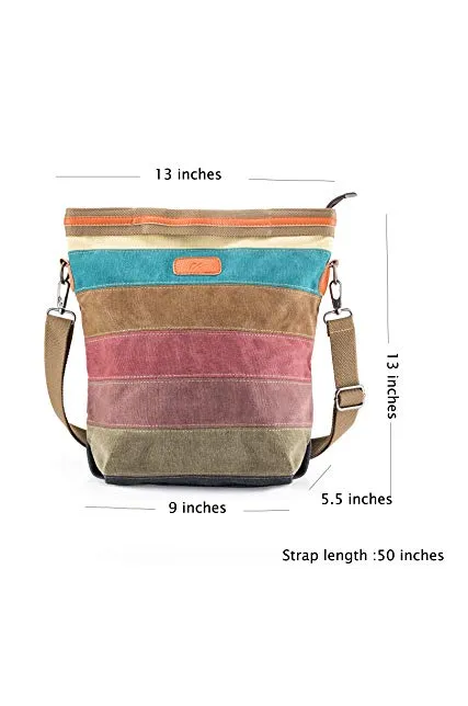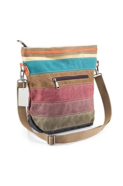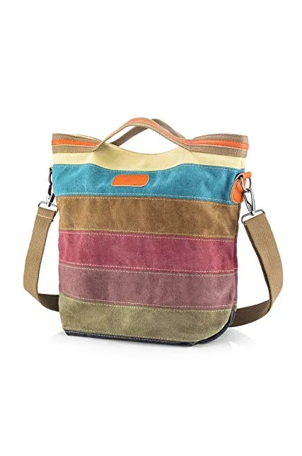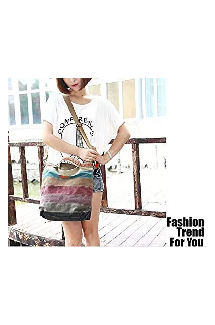 Canvas Handbag SNUG STAR Multi-Color Striped Lattice Cross Body Shoulder Purse Bag Tote-Handbag for Women