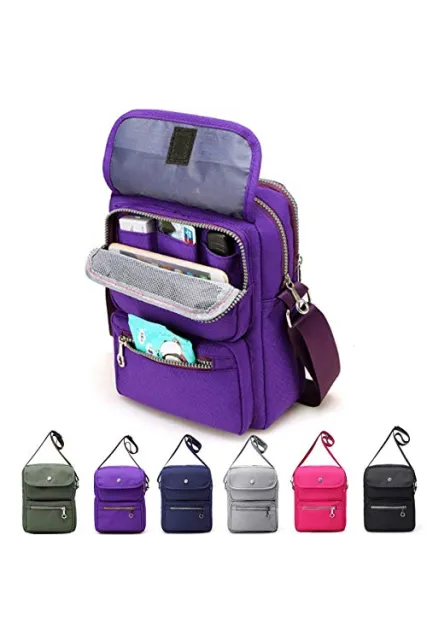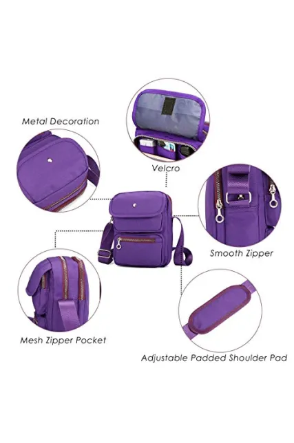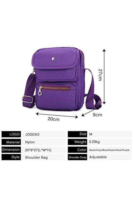 Crossbody Bag for Women, JOSEKO Multi-Pocketed Nylon Shoulder Bag Purse Travel Passport Bag Messenger Bag