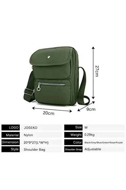 Crossbody Bag for Women, JOSEKO Multi-Pocketed Nylon Shoulder Bag Purse Travel Passport Bag Messenger Bag