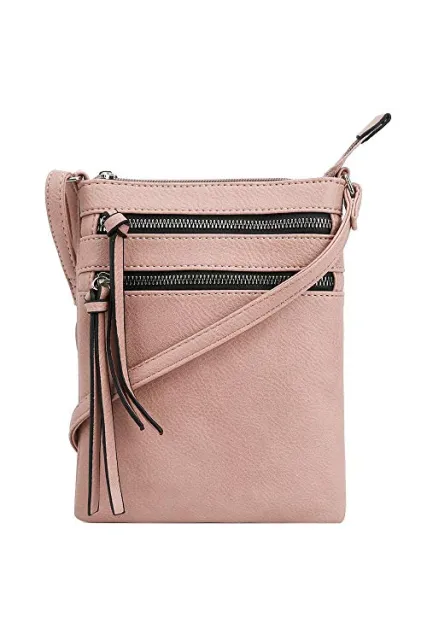 - TRENDY & FASHIONABLE: This trendy fashionable bag features 2 zipper pocket in front and 1 zipper pocket in back. The top zipper is smooth and easy to open and close. The interior consists of a soft fabric perfect for carrying iphones or smartphones. Styling this medium crossbody bag is extremely easy to achieve.