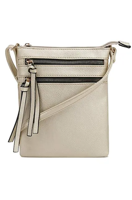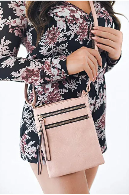 - TRENDY & FASHIONABLE: This trendy fashionable bag features 2 zipper pocket in front and 1 zipper pocket in back. The top zipper is smooth and easy to open and close. The interior consists of a soft fabric perfect for carrying iphones or smartphones. Styling this medium crossbody bag is extremely easy to achieve.