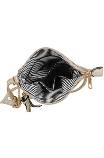 - EASY TO MAINTAIN: The exterior is made from high quality PU leather, while the interior consists of a striped fabric lining and gold tone hardware with its double zipper accentuates the front style look. PU leather is durable and easy to clean, simply just wipe with water to keep this bag looking new.