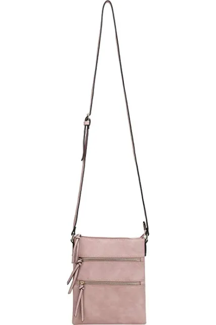 DELUXITY Essential Casual Functional Multi Pocket Double Zipper Crossbody Purse Bag for Women