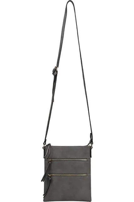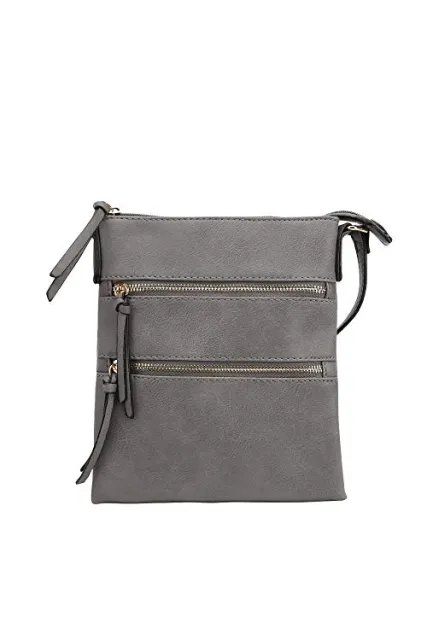 DELUXITY Essential Casual Functional Multi Pocket Double Zipper Crossbody Purse Bag for Women