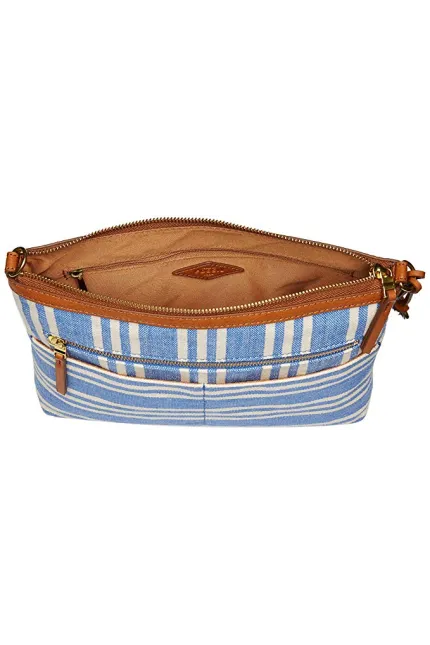 For days when you dont need to carry a lot of things, this bag is wonderful! It has room for a large wallet, stood on its end, my eyeglass case, stood on its end, and a pen and pencil/incidentals pouch in the main compartment, with slip pockets for my inhaler, hand sanitizer, and lipsticks. My Kindle goes in the back outside slip pocket, and my iPhone 8+ goes in one of the front outside slip pockets. I have a very small credit card case that goes in the other outer slip pocket which has my card key for getting in to work so it is easily reached. There is also room for a pen if you like in that outer slip pocket or a tube of lip gloss. the outside zip compartment has my charging cords for phone and kindle. The strap is plenty long, and is adjustable, and can be removed if you just want to carry it as an envelope purse. Its sharp looking, versatile and well made as well as reasonably priced. I dont care for the dark lining, but you cant have everything. Definitely a keeper. Well done Fossil!