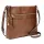 This is a highly functional, nice looking bag that is great for travel. Smooth leather exterior, secure (and open) pockets on the exterior for easy access to phone/keys/travel documents. Wide flat cross body strap is unfortunately not adjustable, but wears well. The studs are a nice touch for style. Because of the simple rectangular shape, this tucks well into a backpack or carry-on bag if youre trying to consolidate space. I liked it so well I got more colors. The strap is removable, so you can change it out for other colors/styles. The size is a large-medium. I can easily carry a full size wallet, cosmetic bag, roll-up grocery bag, compact umbrella, and other small items (gum, mints, etc.)