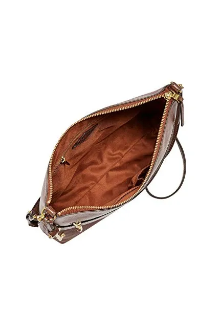 For days when you dont need to carry a lot of things, this bag is wonderful! It has room for a large wallet, stood on its end, my eyeglass case, stood on its end, and a pen and pencil/incidentals pouch in the main compartment, with slip pockets for my inhaler, hand sanitizer, and lipsticks. My Kindle goes in the back outside slip pocket, and my iPhone 8+ goes in one of the front outside slip pockets. I have a very small credit card case that goes in the other outer slip pocket which has my card key for getting in to work so it is easily reached. There is also room for a pen if you like in that outer slip pocket or a tube of lip gloss. the outside zip compartment has my charging cords for phone and kindle. The strap is plenty long, and is adjustable, and can be removed if you just want to carry it as an envelope purse. Its sharp looking, versatile and well made as well as reasonably priced. I dont care for the dark lining, but you cant have everything. Definitely a keeper. Well done Fossil!