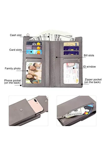 - 【Multi Styles】The wallet purse with an adjustable crossbody strap can be worn as Cross Body Shoulder Bag,Cell Phone Wallet,Clutch Purse,Wristlet Handbag.