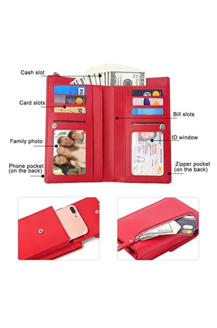 - 【Multi Styles】The wallet purse with an adjustable crossbody strap can be worn as Cross Body Shoulder Bag,Cell Phone Wallet,Clutch Purse,Wristlet Handbag.