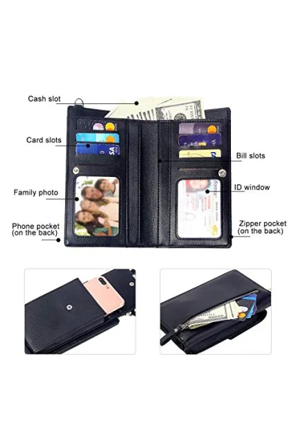- 【Multi Styles】The wallet purse with an adjustable crossbody strap can be worn as Cross Body Shoulder Bag,Cell Phone Wallet,Clutch Purse,Wristlet Handbag.