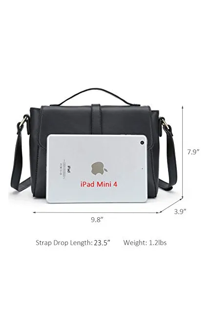- Women handbag size: 9.8"x7.9"x3.9 (LxHxW), cross body strap drop length: 25"