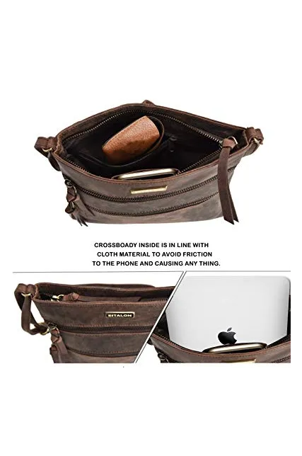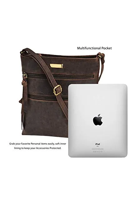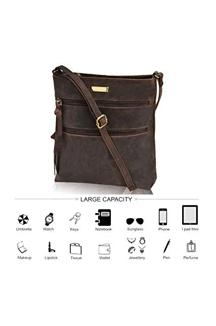 - Material: Crafted from 100% oil-rich genuine leather, our brown crossbody bag for women lends vintage charm to your wardrobe. The supreme quality leather resists wear and tear making it a versatile option for daily use.