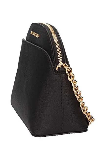 - Compact cross-body in saffiano finished leather with polished golden tone hardware