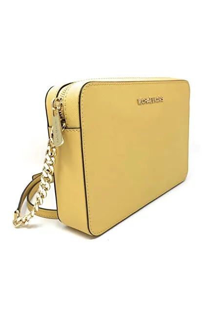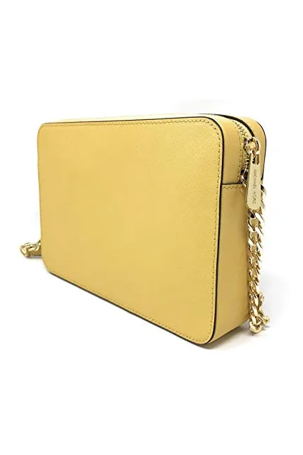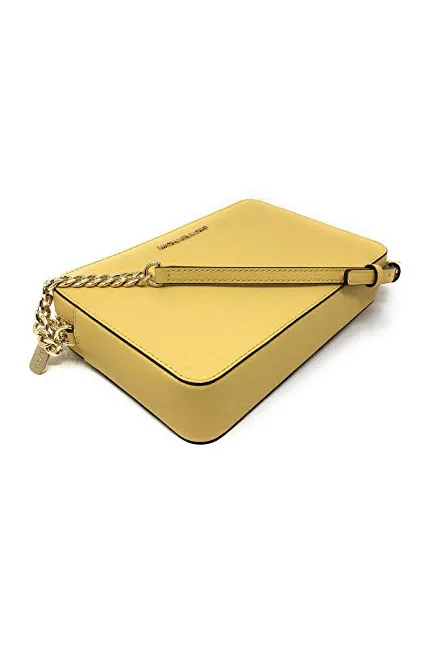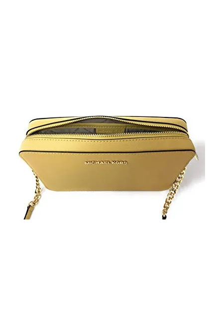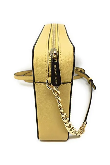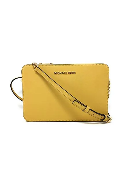- Beautiful and durable golden yellow saffiano finished leather with polished golden tone hardware