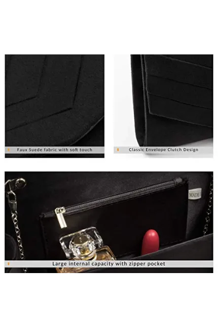 - √【SPECIAL UPDATES】- Each clutch purse, It attached a elegent silver long chain for shoudler(Stronger than before). It won't snag your dress. besides, additional inner zipper pocket designed is for holding all kinds of cards which can keep them safe.