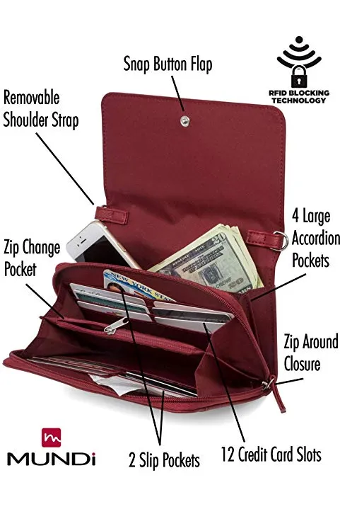 - MUNDI CROSSBODY PURSES FOR WOMEN - Each womens crossbody bag includes: 12 credit card slots, interior zipper coin and change pocket, 2 accordion pockets, 4 large pockets, outside pocket, zip around closure and snap button closing