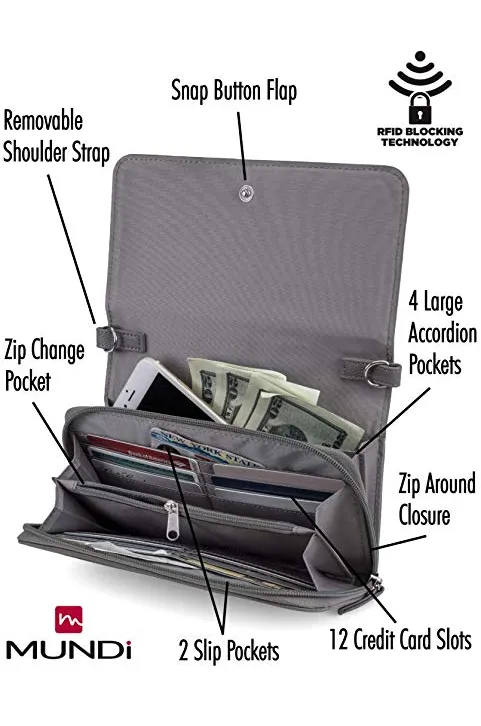 - MUNDI CROSSBODY PURSES FOR WOMEN - Each womens crossbody bag includes: 12 credit card slots, interior zipper coin and change pocket, 2 accordion pockets, 4 large pockets, outside pocket, zip around closure and snap button closing