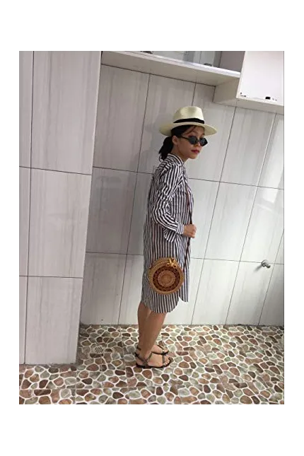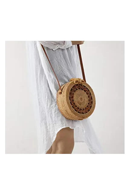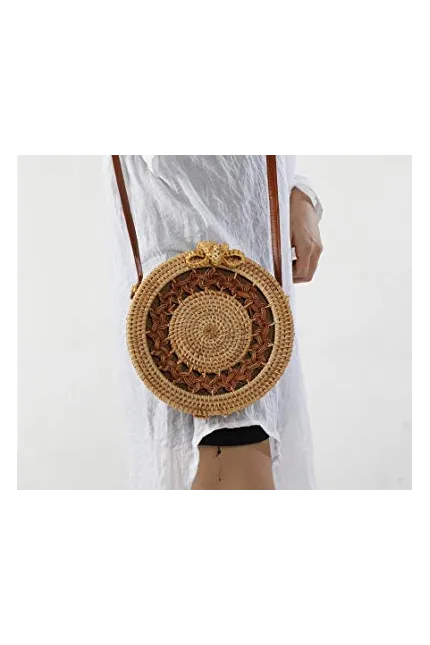 - The shoulder strap is made of PU leather. Rattan bag diameter: 7.87" (20 cm), Bag height: 3.15" (8 cm), length of Leather shoulder straps :53" (135 cm)