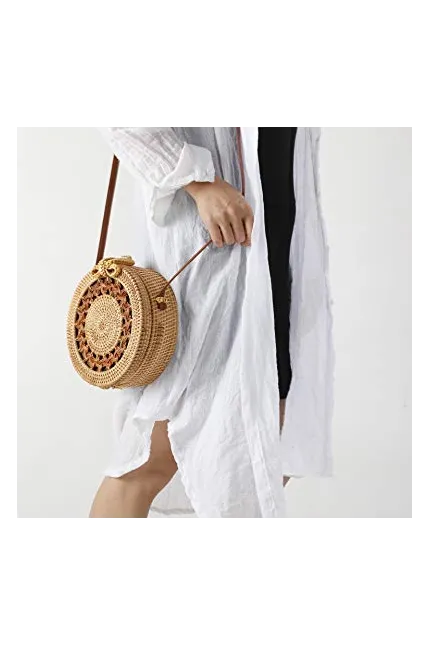 - Every round rattan bag is handmade, so it may vary slightly in detail and size due to the nature of this material. After woven, the bags are smoked over coconut husks to add durability and strength. The smokey scent is due to this making process, but will naturally disappear over time with using and exposure to air.