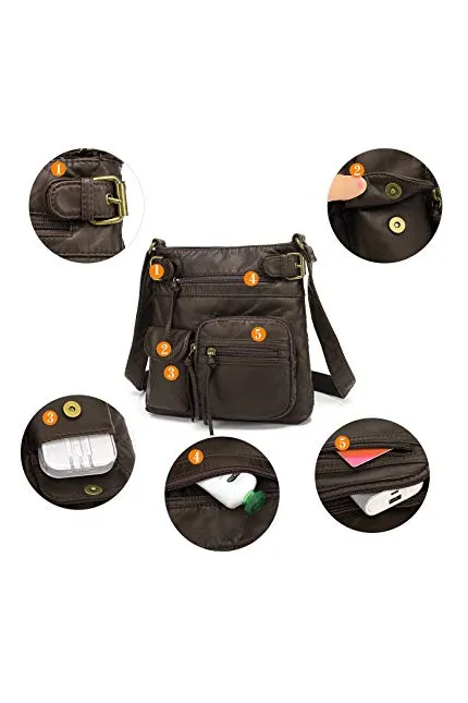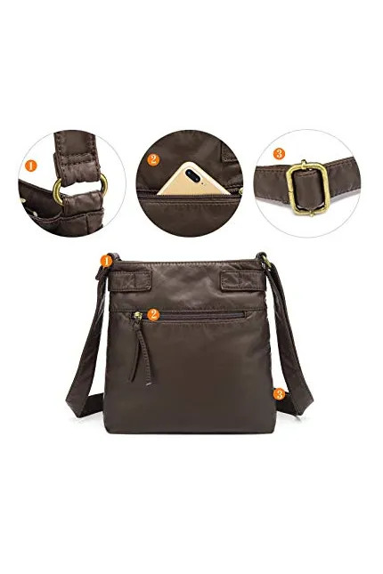 this crossbody bag could NOT be more perfect - it is soft and crushable. has a little pocket for everything! zippers work perfectly and the hardware is a classy dull brass. love it!