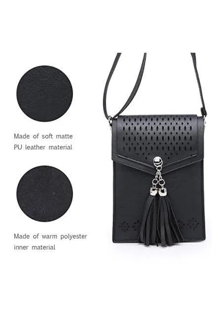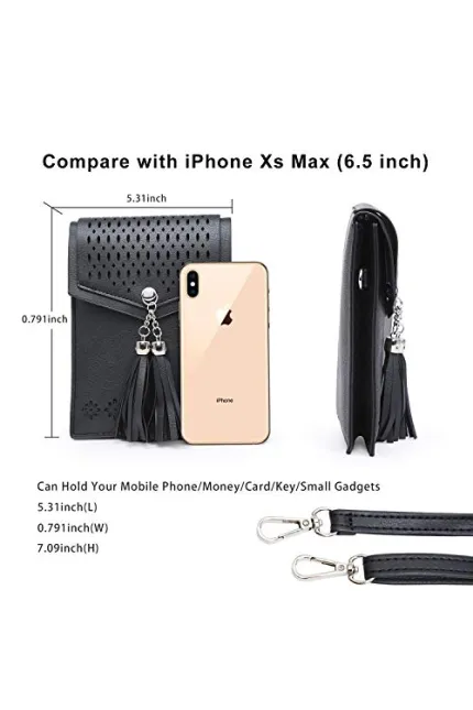 - seOSTO Crossbody phone bag design: design with soft PU leather ,Hollow carved and popular elements tassel which is durable and nice. Dimension: 6.5 inch(L) * 5.12 inch(W) * 0.79inch(H) ; Shoulder Strap length : 53 inch.