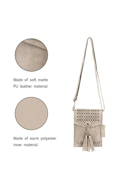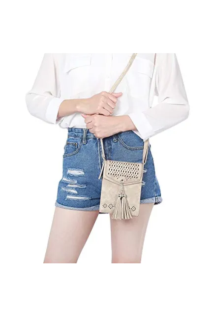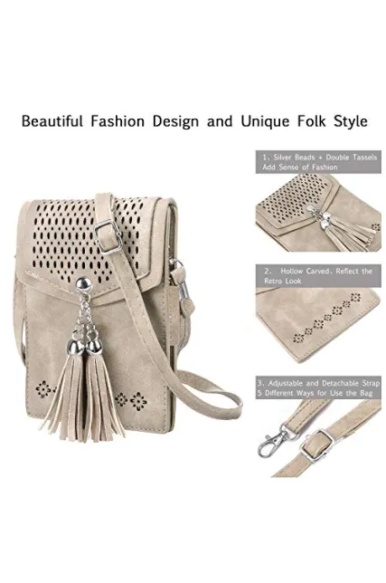 - Crossbody phone bag small purse design with soft PU leather ,Hollow carved and popular elements tassel.which is durable and nice.