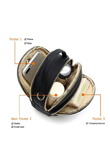 - FEATURES: 3 Zipper pockets.Adjustable Crossbody Strap.Decorative Hardware.The back of crossbody bag has a headphone hole for easy use.