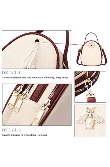 - FEATURES: 3 Zipper pockets.Adjustable Crossbody Strap.Decorative Hardware.The back of crossbody bag has a headphone hole for easy use.