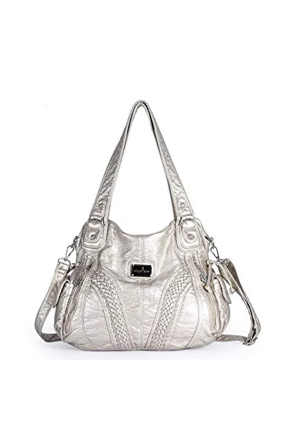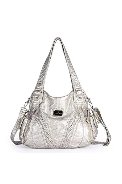 Angelkiss Women Top Handle Satchel Handbags Shoulder Bag Messenger Tote Washed Leather Purses Bag …