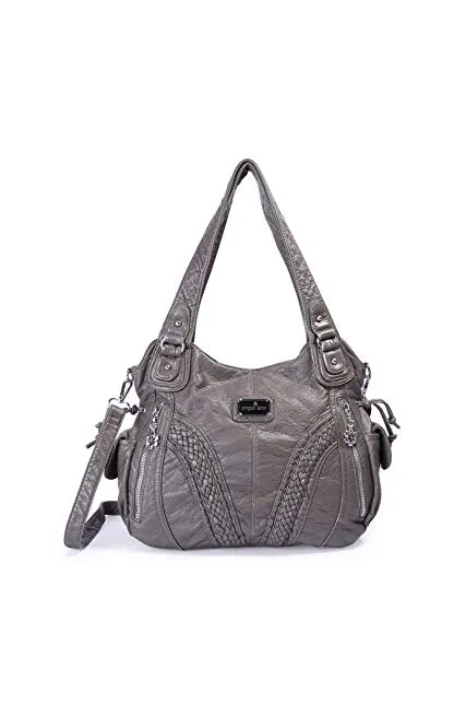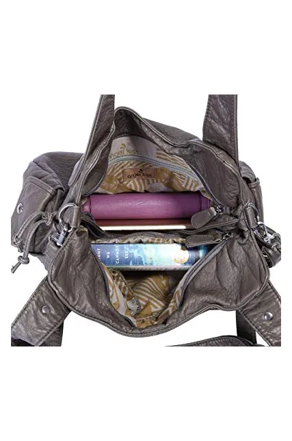 Angelkiss Women Top Handle Satchel Handbags Shoulder Bag Messenger Tote Washed Leather Purses Bag …