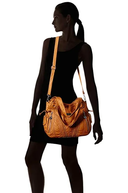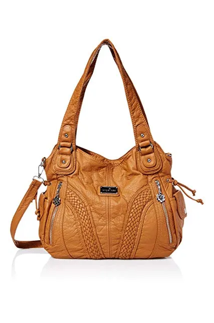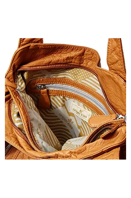 Angelkiss Women Top Handle Satchel Handbags Shoulder Bag Messenger Tote Washed Leather Purses Bag …