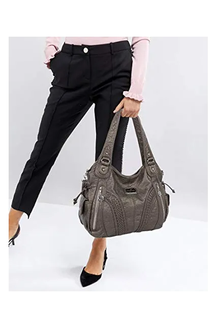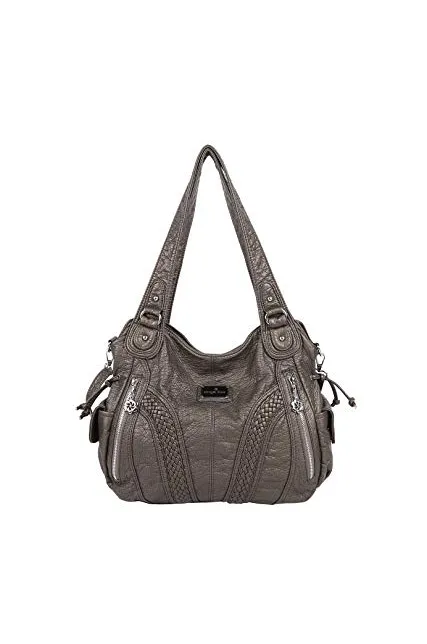 Angelkiss Women Top Handle Satchel Handbags Shoulder Bag Messenger Tote Washed Leather Purses Bag …